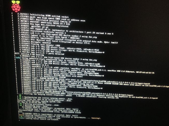 コンセントを繋ぐと自動的に電源が入り、画面におなじみのLinux起動画面が